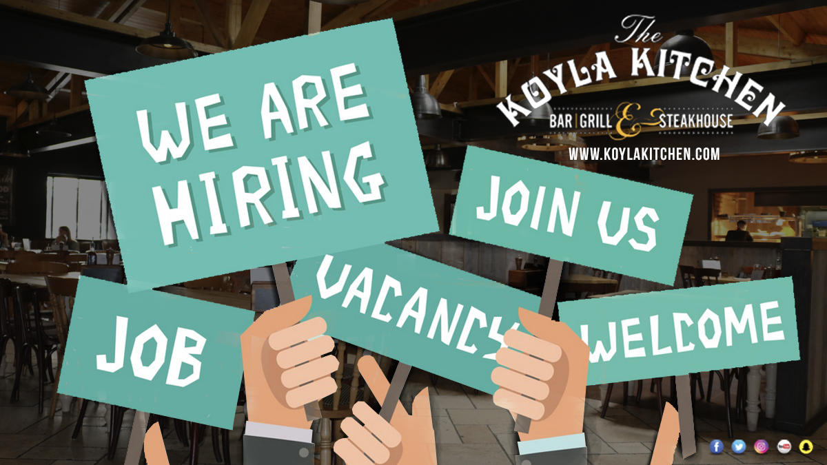 Looking for work? We are hiring at The Koyla Kitchen. Waiters, Bar Staff, etc. Get in touch! Email us on info@koylakitchen.com with your CV and details. Good Luck.